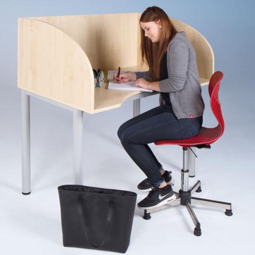 Die Einsatzmöglichkeiten für diesen Tisch sind vielfältig. Überall, wo in Ruhe gearbeitet oder recherchiert werden soll, ist er goldrichtig. Beispielsweise in Räumen zur Freiarbeit, in Bibliotheken, Lehrerzimmern oder im Foyer. Der Tisch ist in mehreren Größen erhältlich, wahlweise mit oder ohne Blechkabelkanal.