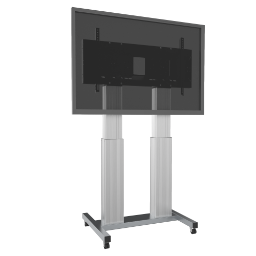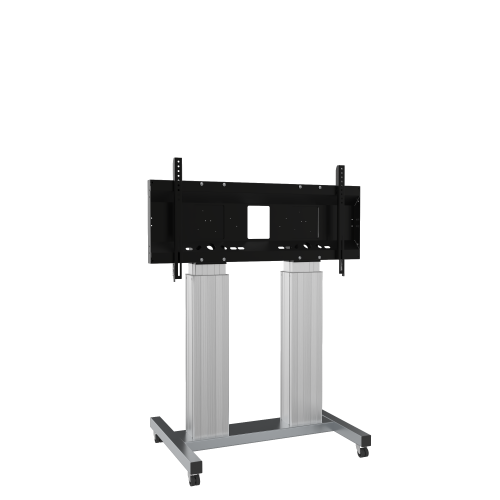Elektrisch höhenverstellbarer TV Rollwagen mit XL Rahmen zur Aufnahme von Displays.