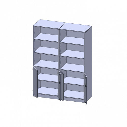 B/H/T: 140,6x190x50 cm, 2 OH unten mit Türen, oben 3 OH Regal, mit Sockel (81 mm), mit Mittelwand