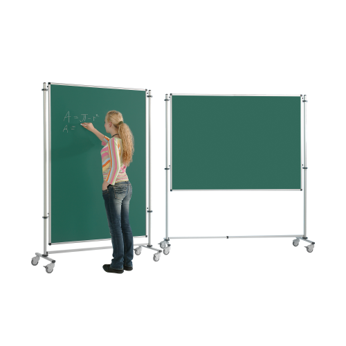 Diese fahrbaren Tafeln sind unglaublich flexibel, super leicht und somit für jeden Schüler ganz einfach zu bewegen. Dank des verstellbaren Zwischenstücks des Rollstatives kann jede Tafelgröße hoch oder quer eingehangen werden. Immer wieder anders, ganz wie Sie es benötigen. Dieses Modell ist mit Kreide beschreibbar und magnethaftend.