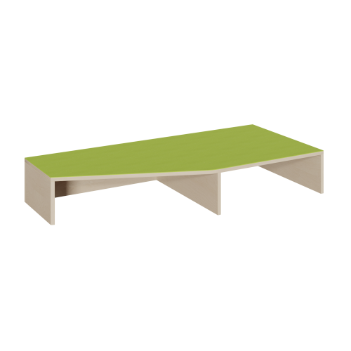 Unser Schrägenpodest verbindet Podeste der Tiefe 40 cm und 70 cm auf elegante Art und Weise. Zusätzlich bietet es auf der rechten Seite einem 66 cm tiefen Rollkasten einen Garagenplatz. Eine weitere geschlossene Nische entsteht auf der linken Seite unter der Linoleum-Oberplatte. Die 2 mm - ABS Sicherheitskanten an der Podestplatte aus 19 mm E 1-Feinspanplatte gewährleisten beanspruchungsfähige Bauteilkanten, die den täglichen Beanspruchungen ohne Weiteres standhalten. Die Linoleumoberfläche stellt eine strapazierfähige und pflegeleichte Oberfläche zur Verfügung, sie ist aus mehreren fröhlichen Farben wählbar. Mit dem Material Linoleum wird eine geräuschdämmende, kratzfeste, abwisch- und desinfizierbare Oberfläche angeboten. Das Dekor des Podestkorpus ist ebenfalls in mehreren Varianten verfügbar: bitte wählen Sie bei der Bestellung!