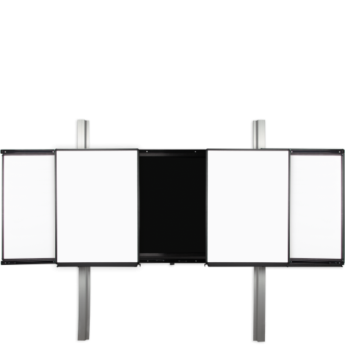 mit zwei festen Whiteboardflächen, zwei Rollflügeln, Kollisionsschutz & Passepartout, Pylonenlänge 2900 mm
