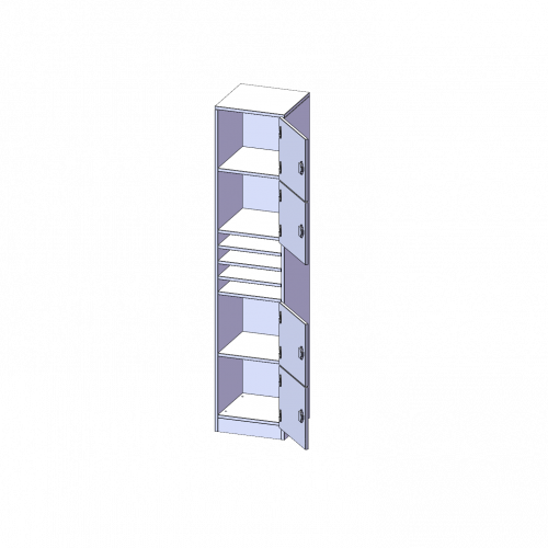 B/H/T: 40,5x190x40 cm, 4 Schließfächer, je 1 Kleinfach, Türen öffnen nach rechts, mit Sockel (81 mm)
