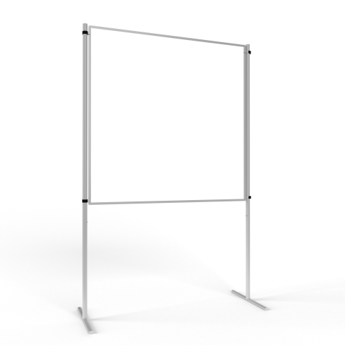 Unsere Schutzwände können einfach in die Stative gehängt werden, fertig! Beliebig kombinierbar, kinderleicht auf- und abzubauen, quer- und längsförmig verwendbar.