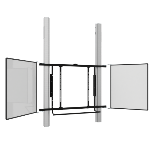 Produktinformationen "Wandmontiertes 2 Säulen Pylonensystem für Monitore 75" oder 86" elektrisch höhenverstellbar, 70 cm Hub, mit Universal-Seitenflügeln für 75 oder 86""