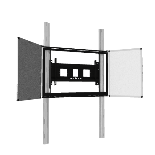 Per manueller Höhenverstellung lässt sich die komplette Monitor Wandhalterung an den zwei an der Wand und am Boden montierten Aluminiumpylonen in der Höhe verstellen. Dadurch ist gewährleistet, dass jeder Benutzer in der für ihn ergonomisch besten Höhe arbeiten und präsentieren kann. Rechts und links neben dem Touchscreen Display befinden sich zwei fest montierte Seitenflügel, die magnethaftend, beschreibbar und trocken abwischbar sind. Eingefasst sind alle Flügel in Aluminiumprofile, wasserfest verklebt und schwarz eloxiert. Für die Höheverstellung wird im Standard ein Griff mitgeliefert.
